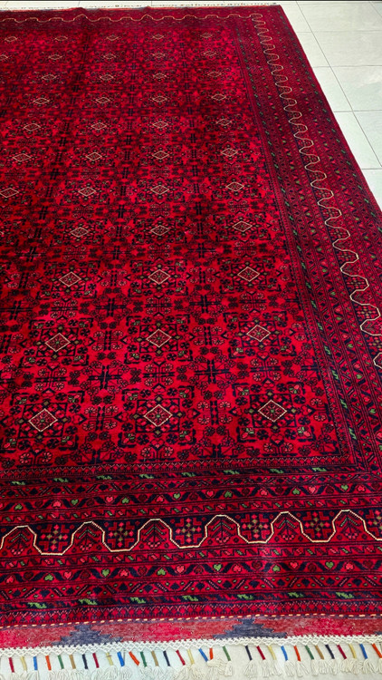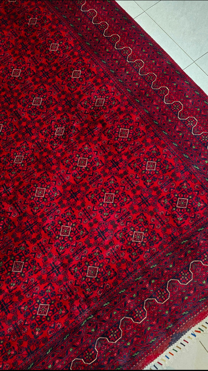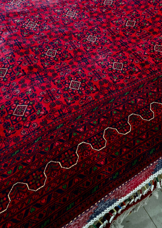 فرش دستباف نه متری بلوچی نقشه بخارایی تمام کرک نوع درجه ۱
