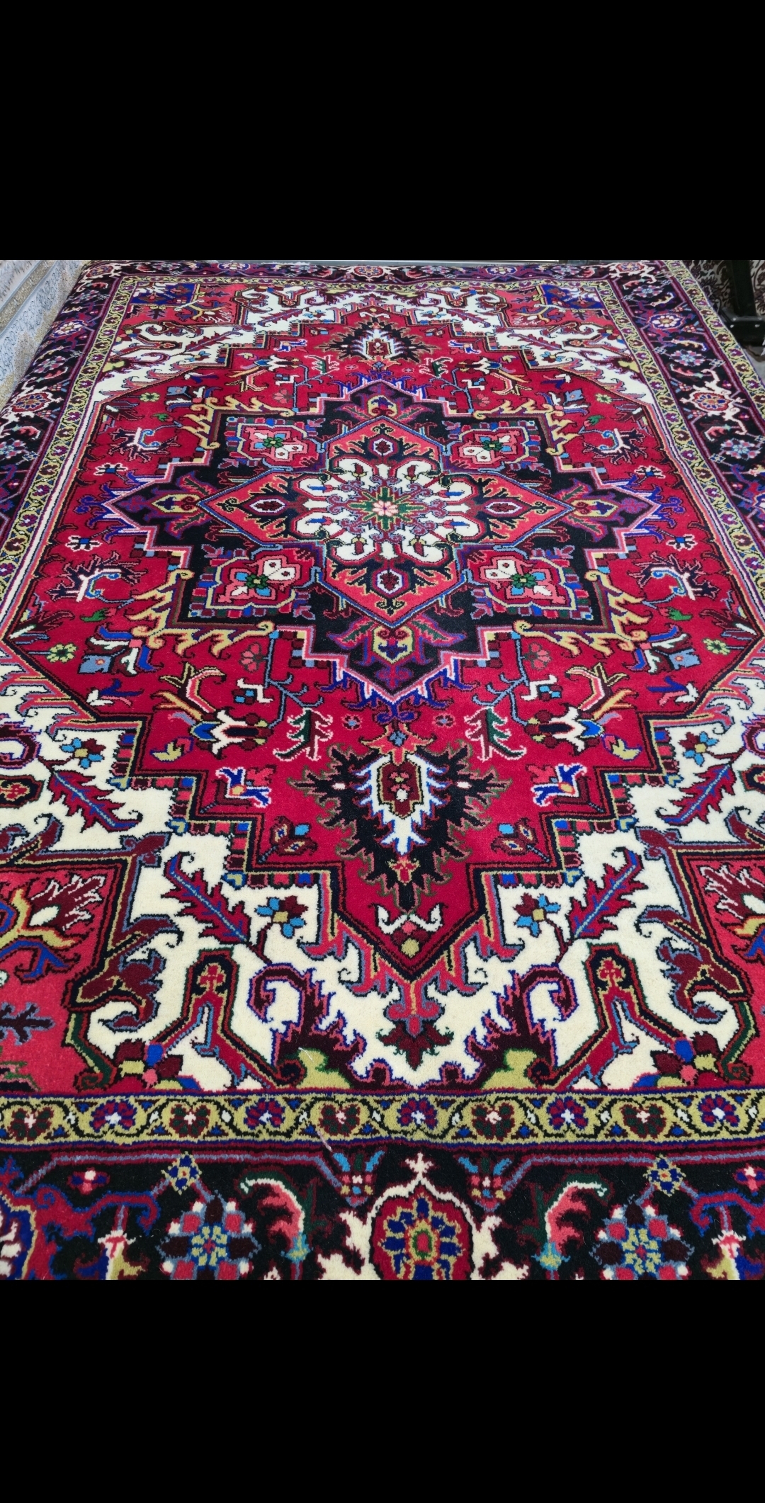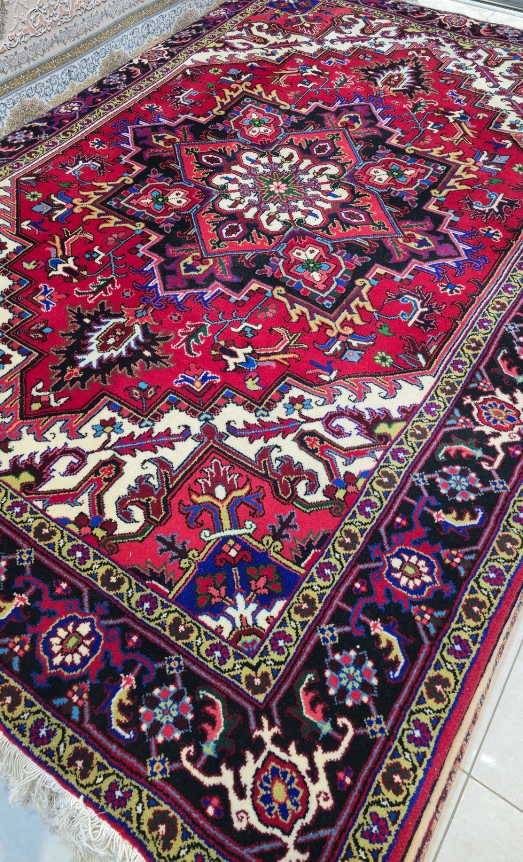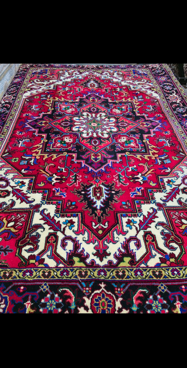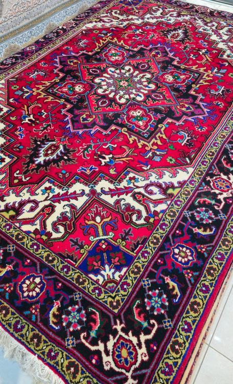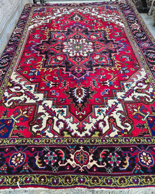 توجه فرمایید قالیهای هریس عمدتا کارکرده میباشند این قالی نو آکبند میباشد.