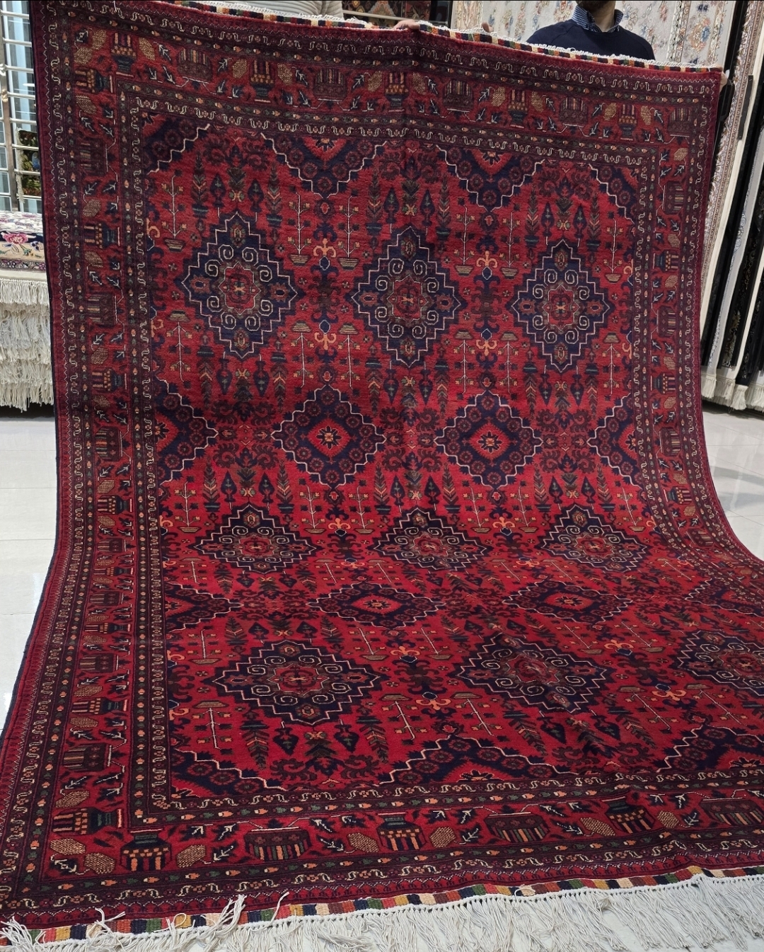 فرش دستباف شش متری لاکی بلوچی تمام کرک نقشه زیرخاکی بخارایی