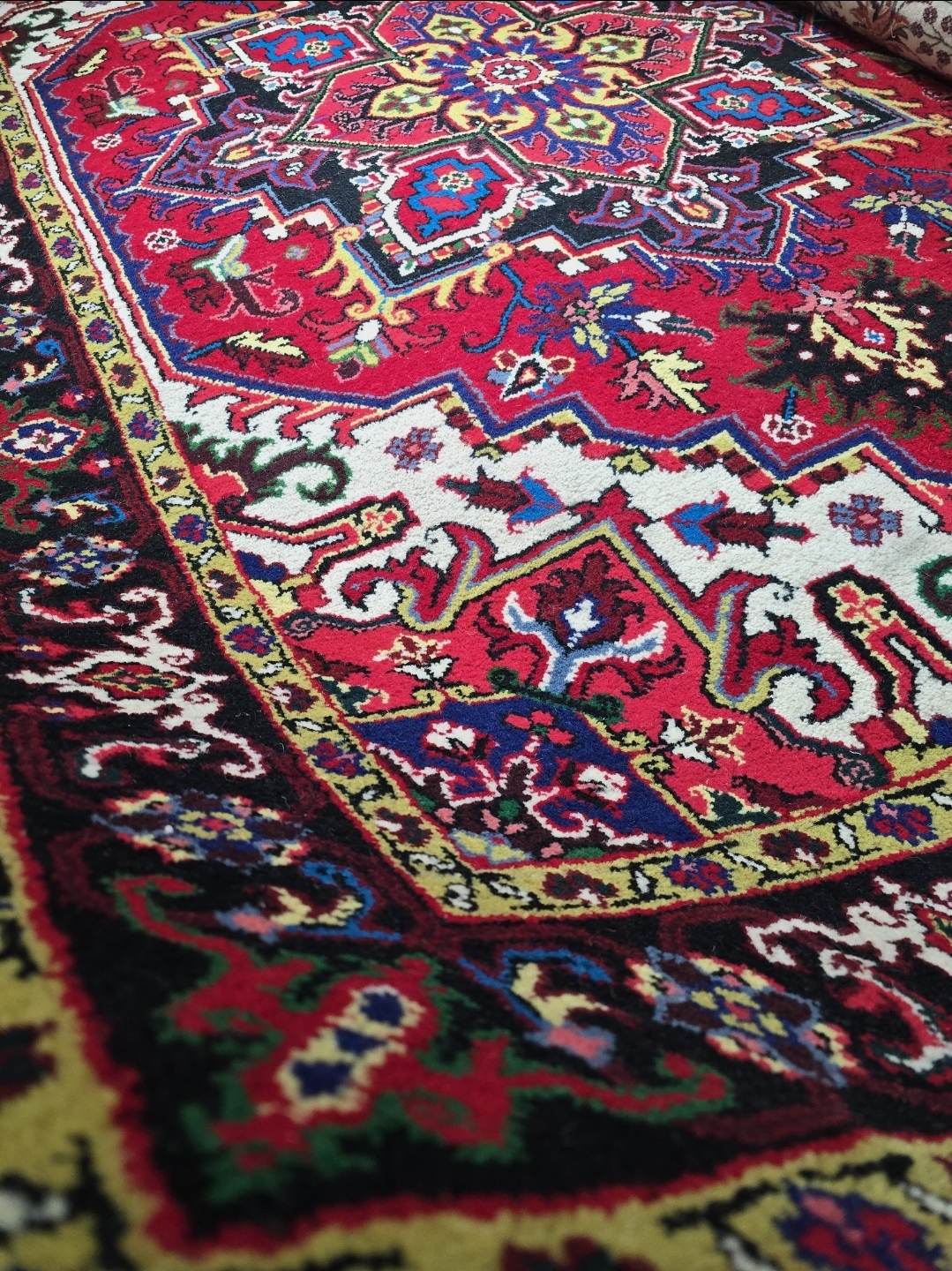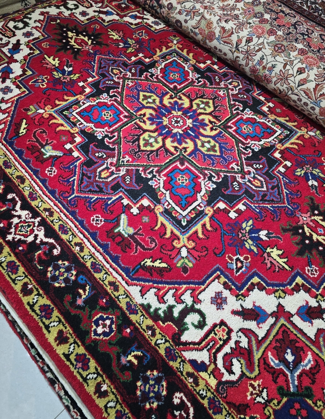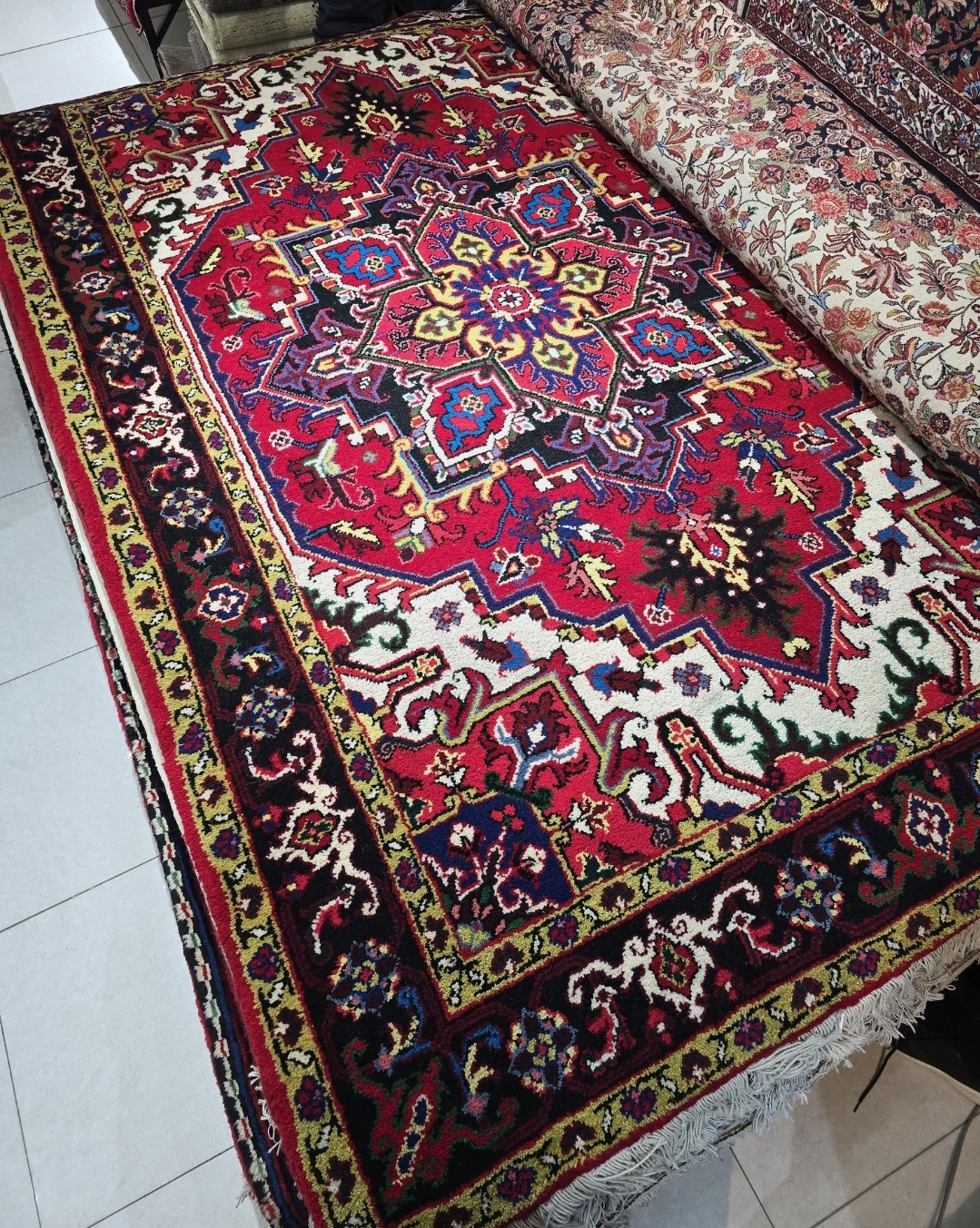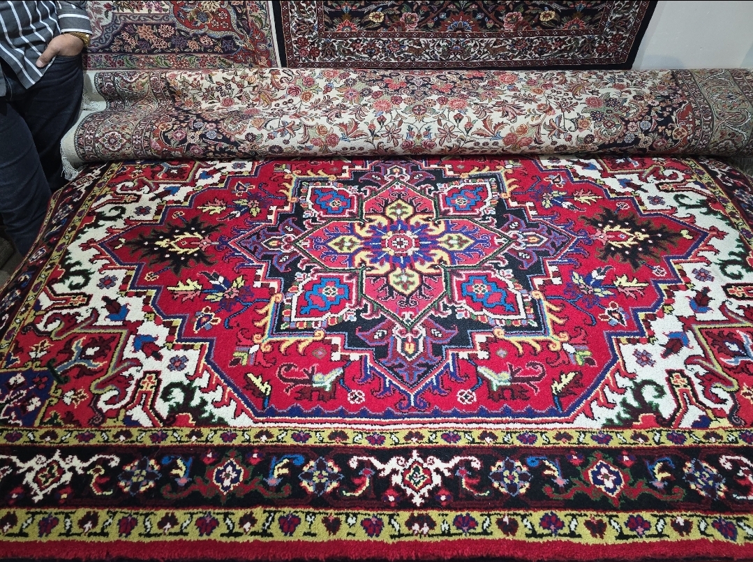 فرش دستباف قالیچه هریس زمینه لاکی نو آکبند نوع درجه ۱- بافت بسیار تمیز ابعاد ۲۳۰ در ۱۶۰ **قابل سفارش مشابه در ابعاد ۶ و ۹ متری بصورت جفت و تک